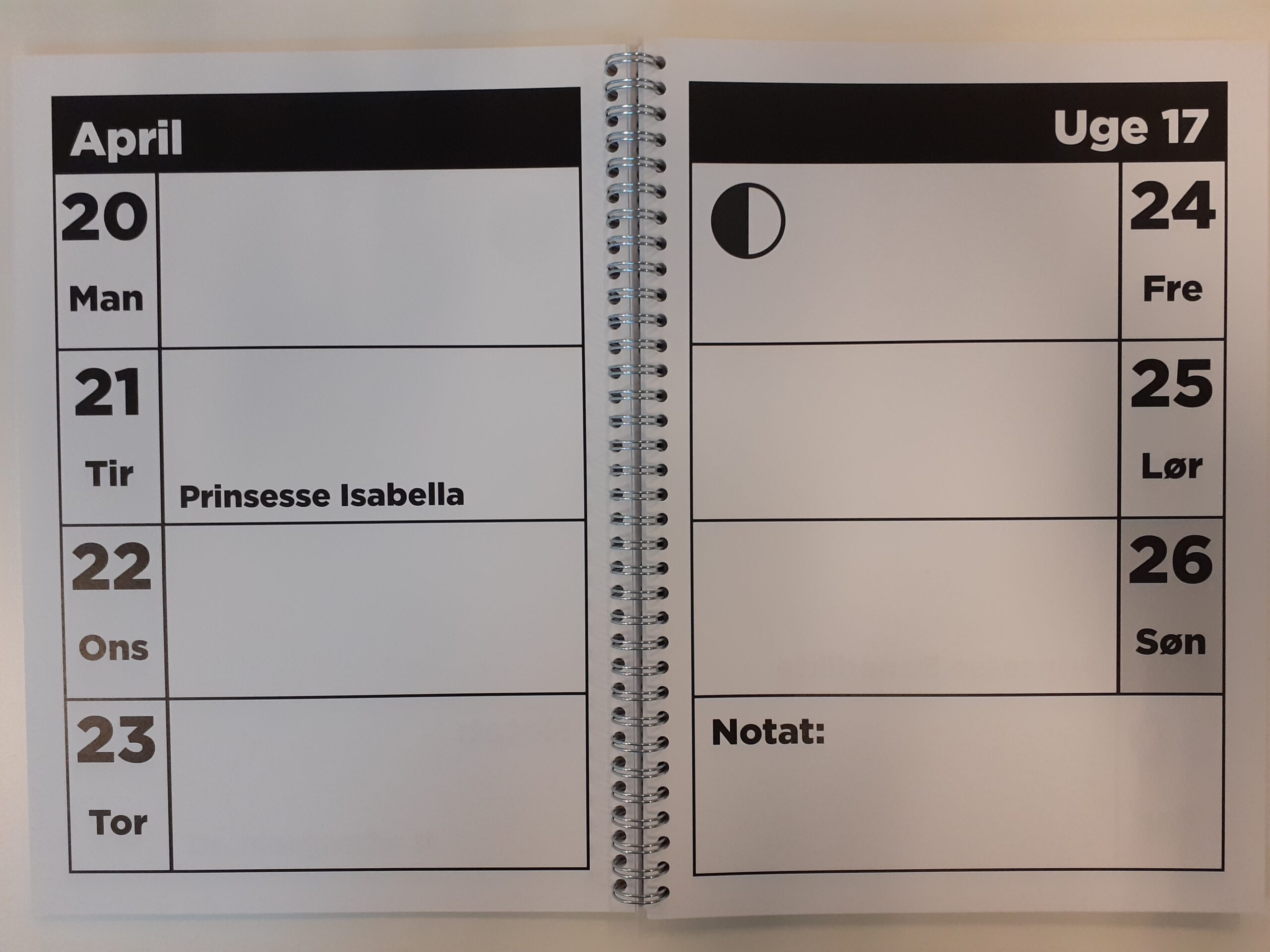 Årskalender 2026 A4, Der en uge på hver side. Der er alle kongelige fødselsdage og alle hellig dage.