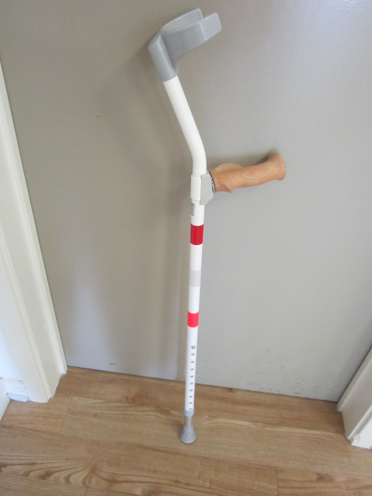 Albuestok med ergogreb i træ hvidreflekteret højre hånd.