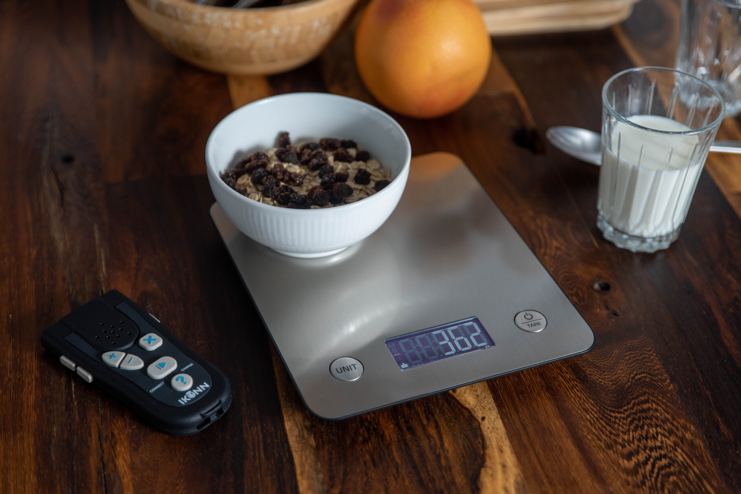 IKONN køkkenvægt sk-1 er en digital køkkenvægt til hele familien. Den kombinerer elegance funktionalitet og tilgængelighed med et display med høj kontrast, taktile knapper og et brugervenligt stilfuldt design.